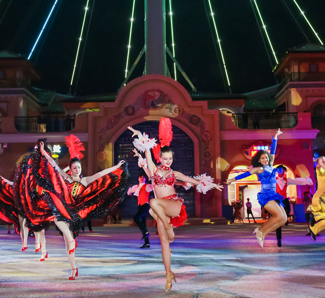 幽默欢乐的滑稽表演、情景剧、卡通人偶与游客频频互动,全天数十场表演精彩纷呈,爆笑全园欢乐不断
