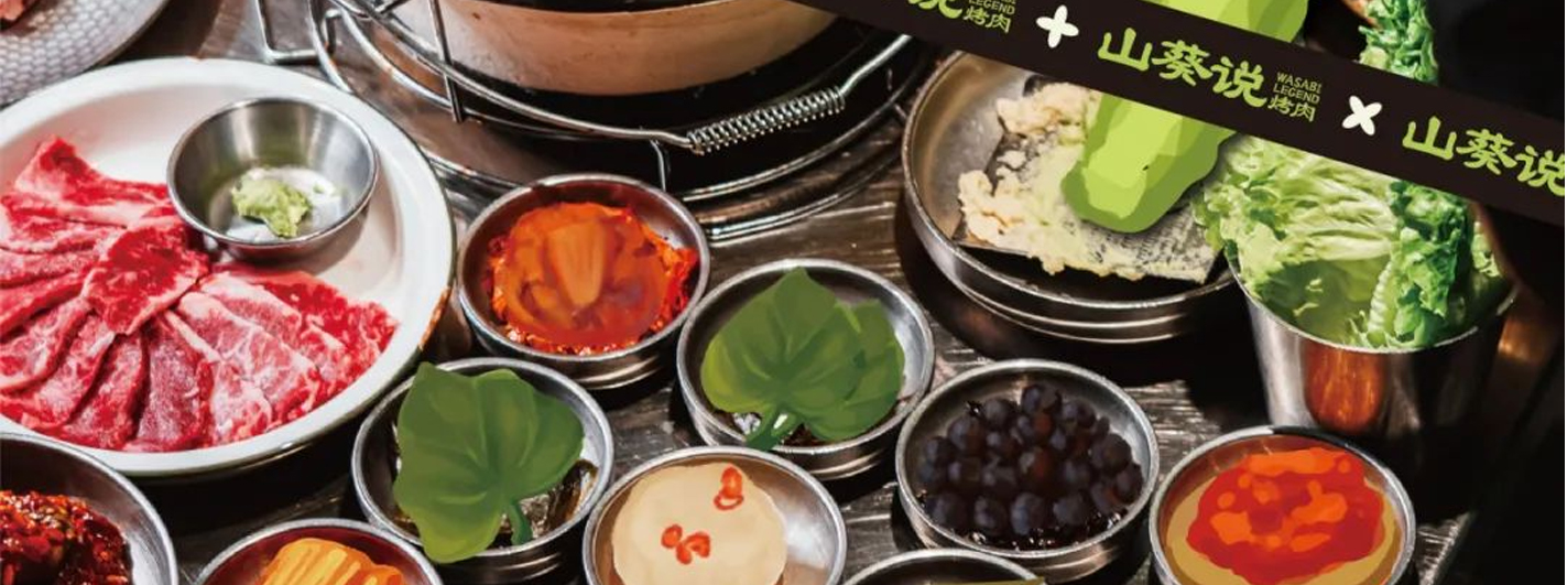 山葵说·烤肉,以打造一个年轻化、多元、创意、融合的品牌使命为出发点,立足于传统韩式烤肉进行吃法创新,将韩式炭火烤肉进行重新演绎,加入日式配料的组合,打造出以“山葵+烤肉”的创意融合烤肉组合。